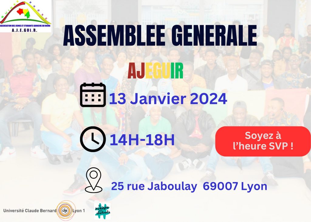 L’Assemblée générale de l’Association des Jeunes et Étudiants Guinéens du Rhône est le grand rendez-vous annuel de l’association. C’est le moment pour le Bureau de présenter le bilan de son exercice ainsi ses projets pour la seconde année de son mandat.
